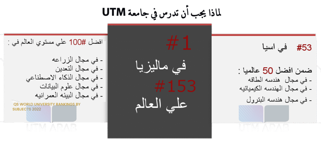 سمعة أكاديمية عالمية: جامعة UTM من الجامعات الرائدة في آسيا والعالم، مما يمنح الخريج شهادة ذات اعتراف دولي واسع.
